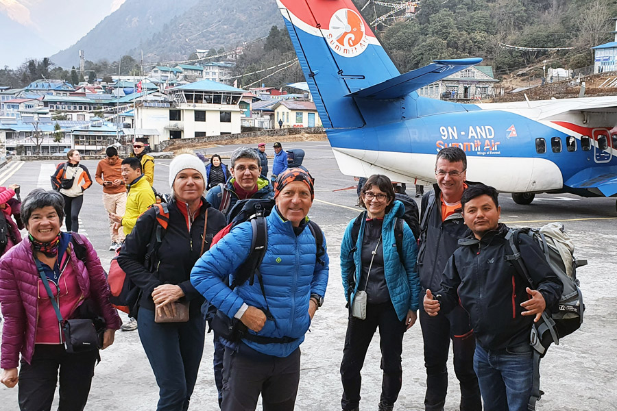 Flight back to Kathmandu or Ramechap. Mostly in big season will be Lukla to Ramechap/ Manthali airport to avoid the traffic jam at Kathmandu. And 5 hours of vehicles to arrive Kathmandu.