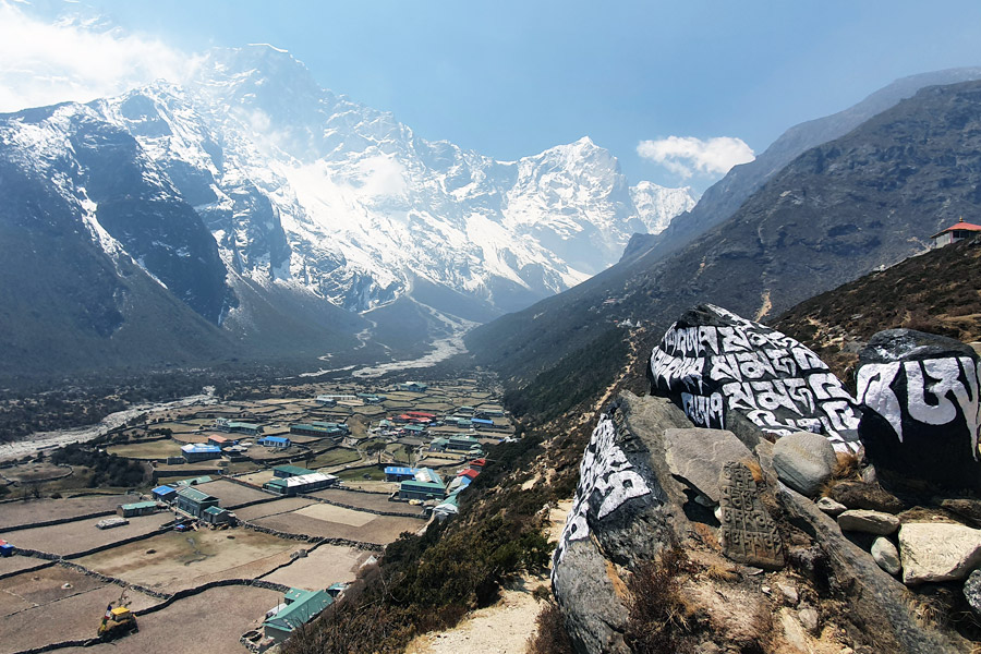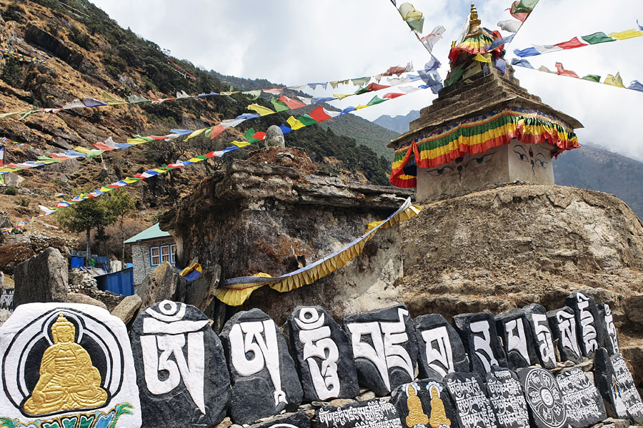 Early departure from the hotel to reach Kathmandu airport/Manthali Airport then flight of approximately 35/20 minutes to Lukla (2840m). We can see the range of the himalaya from our flight and already observe some mountains with snow covered from lukla. We go to lodge to meet the porters and take a cup of tea and coffee to start our journey. We will check our baggages and give to porters and we will find it only in the camp for the night. After tea break, we pass through the Lukla small city and meet the control point for the permits. We already notice the Buddhist culture and see it's monuments like Stupa, Chorten, prayer wheels with prayer flags. We descents towards Thado Koshi (2550m) for our lunch, Kusum Kanguru (6367m is just infront of us . After 1h 30 minutes of walk by passing some small villages and Buddhist monuments we arrive at our camp Phagding village.