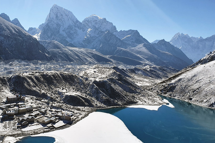 We descends to wards one big village Dingboche. One of the big village, where some villagers live whole year. People cultive potatoes, barley et vegetables. This is the gateway to climb Island Peak (6189m), famous peak for the people who want to do the alpinist. We descends by following Imja Khoa by passing Somare (4010m). This day is the day of Bouddhist old and famous monasteries visit like at Pangboche (3939m) and Tengboche (3860m), which carry the historic importance of khumbu region. We lunch at Tengboche and steep descends up to the river dudh koshi at Phunki (3250m), the steep climb up steadily up to Kenjoma (3550m), we will do the one circuit trek. We join the path, from where we climb up to Gokyo lake. Nice view hotel of Ama Dablam and other peaks.