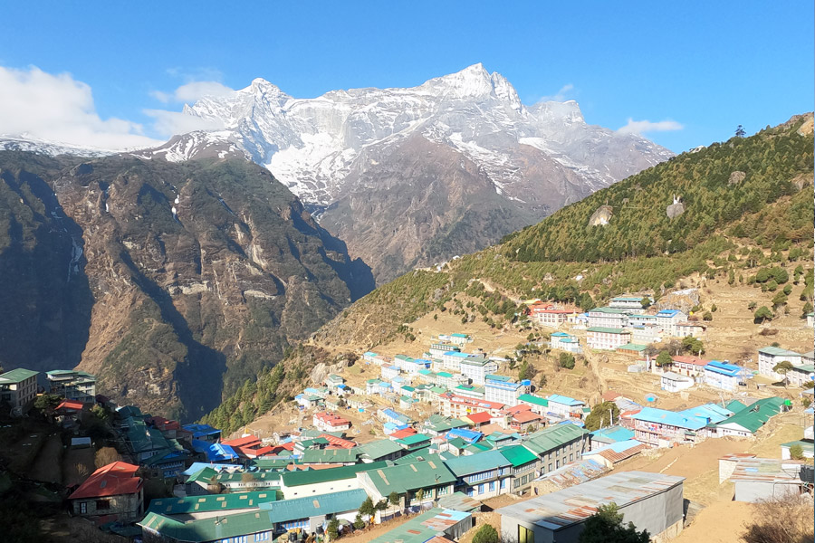 The day already, we attack to high altitude, we continue climb gradually towards Monjo village by the bank of the Dudh Kosi river, We pass through lots of beautiful village and can see Kusum Kanguru (6367m) and Thermserku Himal(6618m). We enter in the Sagarmatha Nation Park, and check point for the permits at Monjo. Jorsala(2740m) is the best place to lunch just at the bank of the river. We cross the bridge for several times, by passing the last long and high suspension bridge we climb up steepy part from where we can observe first point view of Mt. Everest (8848m). We arrive at Namche Bazar, where we stay for two nights. Namche is the gateway to the Khumbu region and Namche Bazaar is an entrance and a cultural hub as well as the real crossroads for the different treks in the region, don't be surprised to meet a lot of people before entering the city and when leaving.