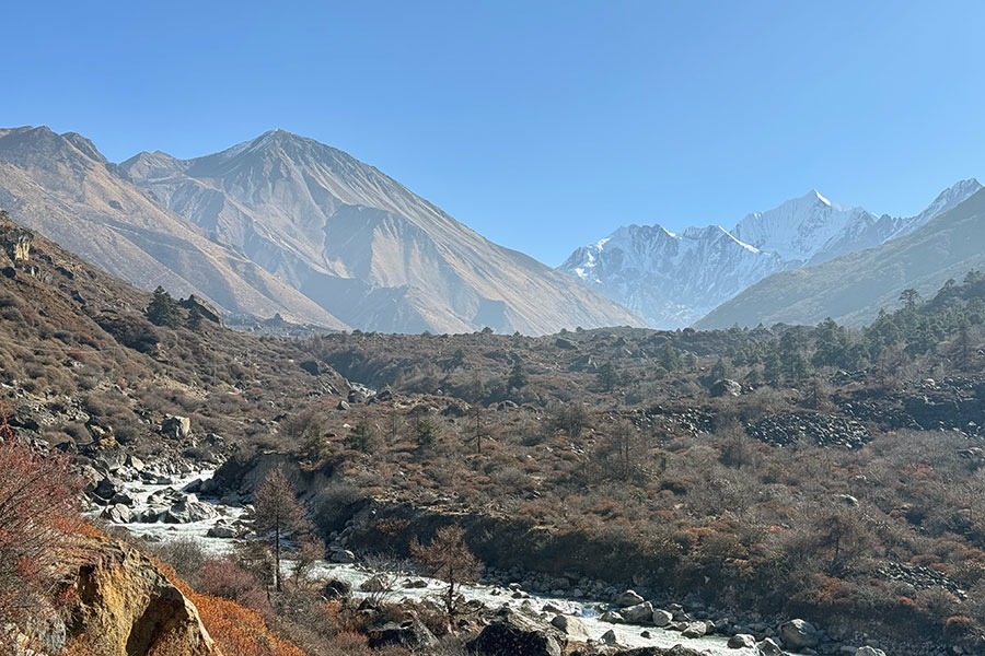 L'automne se produit entre les mois de septembre et novembre, promettant des vues dégagées sur les montagnes, un ciel bleu et un temps confortable. Si vous préférez voyager au printemps, de février à mai, vous serez récompensés par la vue des rhododendrons qui enchantent les pentes alpines de la vallée du Langtang.